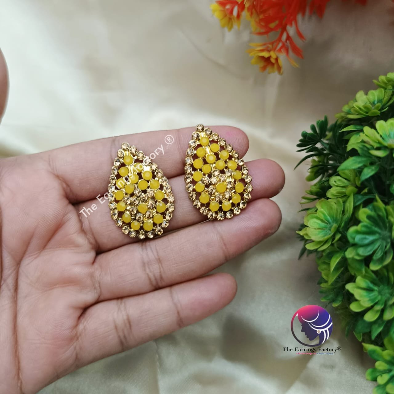 Fancy Golden stone Studs earrings