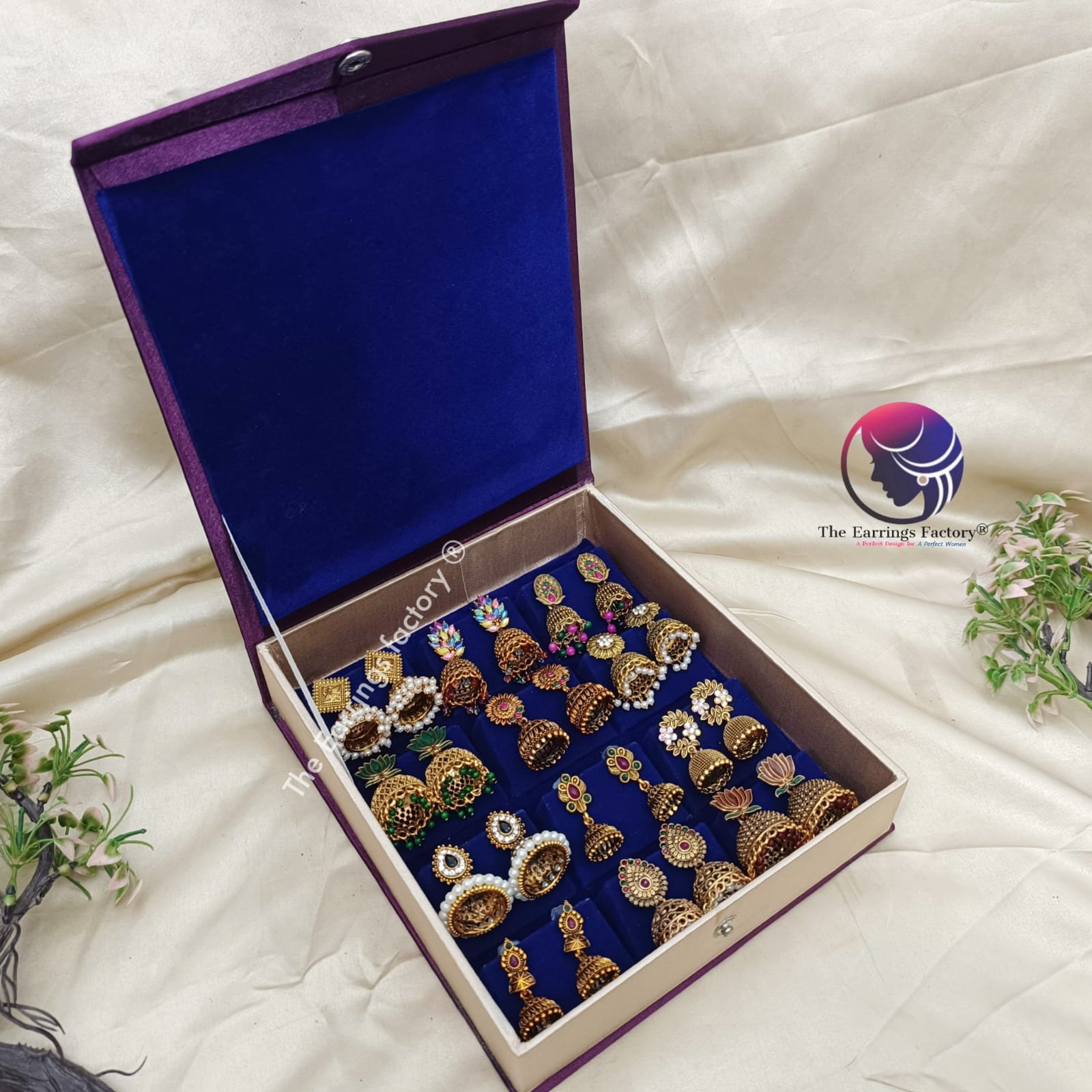Set of 12 pair Earrings With Square Jewellery box