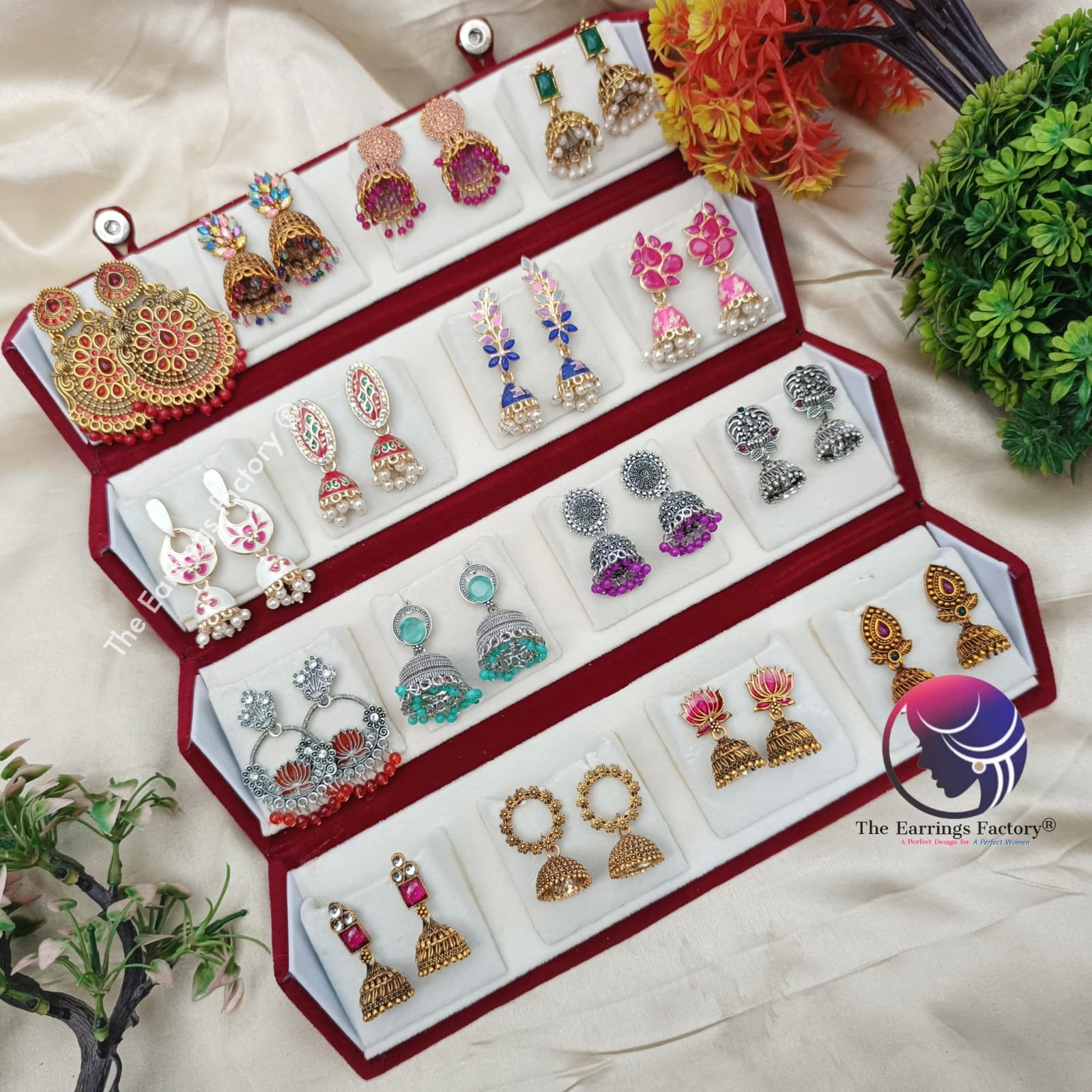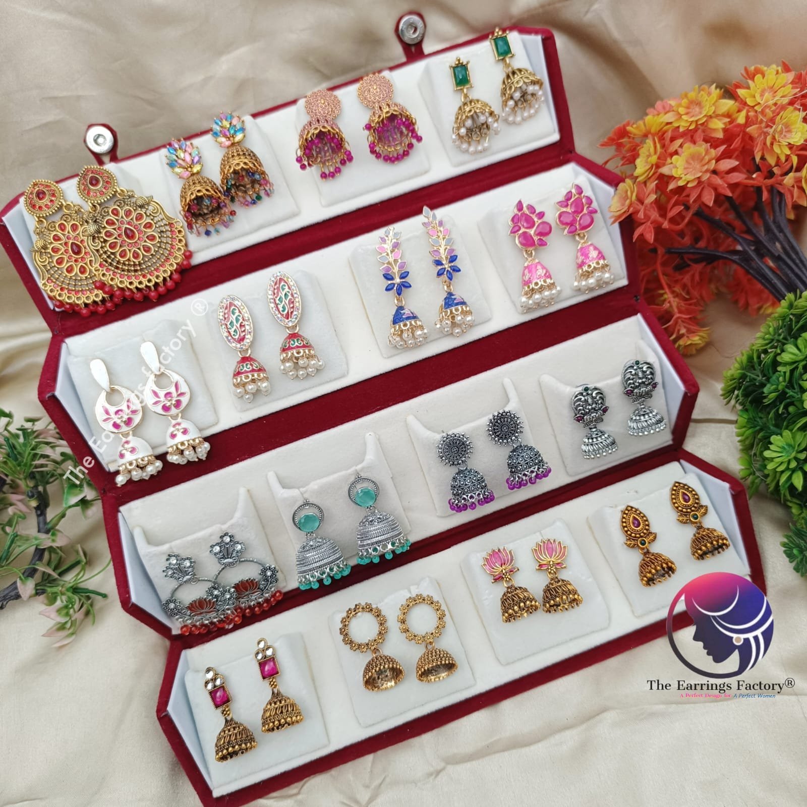 Set of 16 pair Earrings With Folding Jewellery box