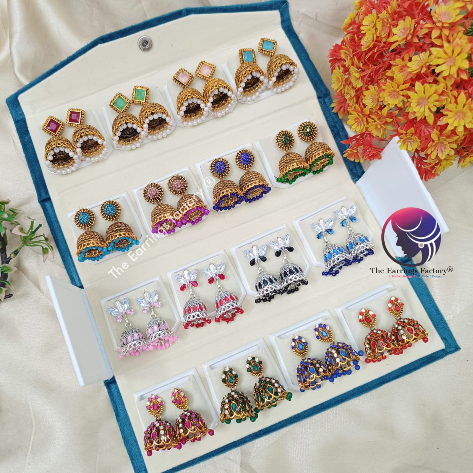Set of 16 pair Earrings With Folding Jewellery box