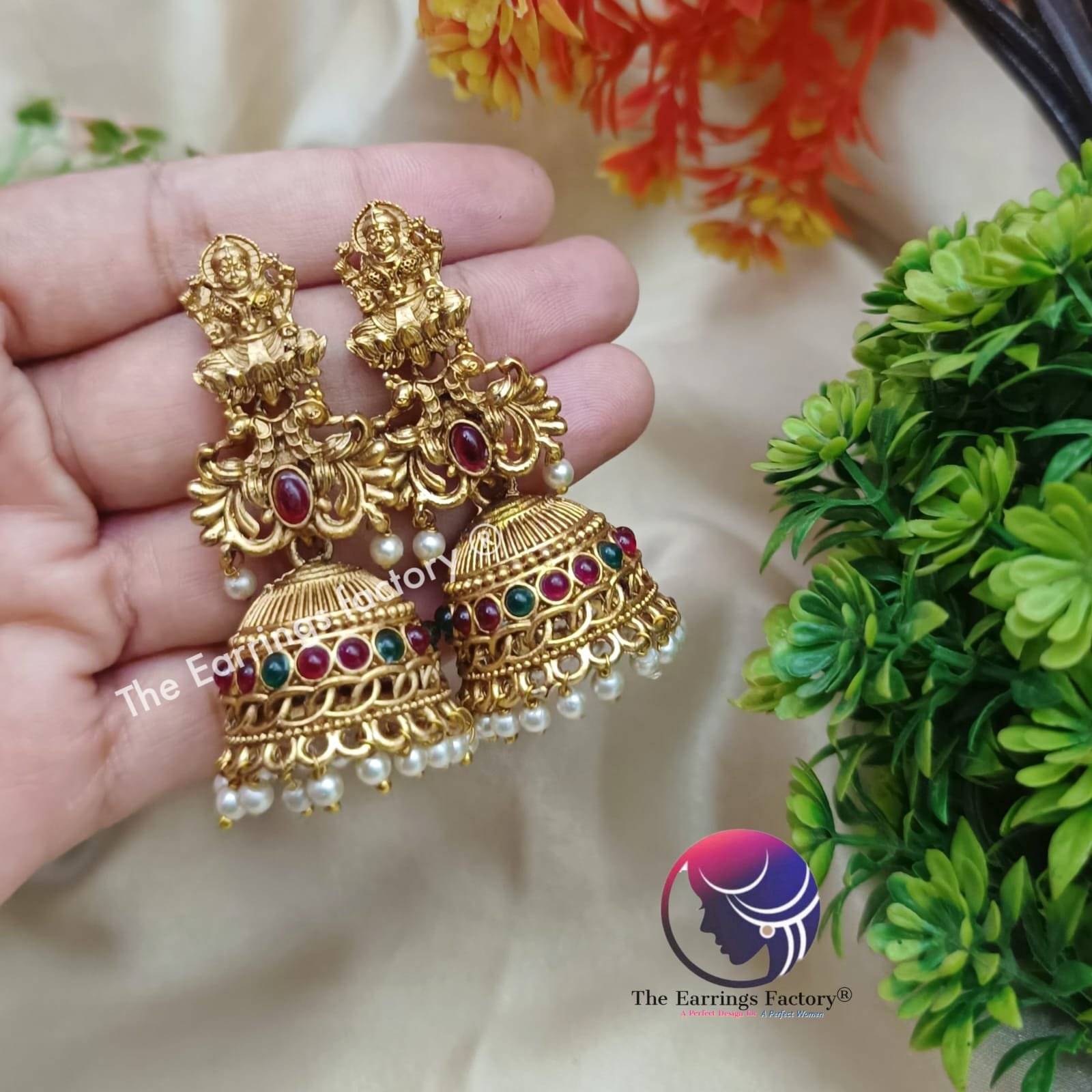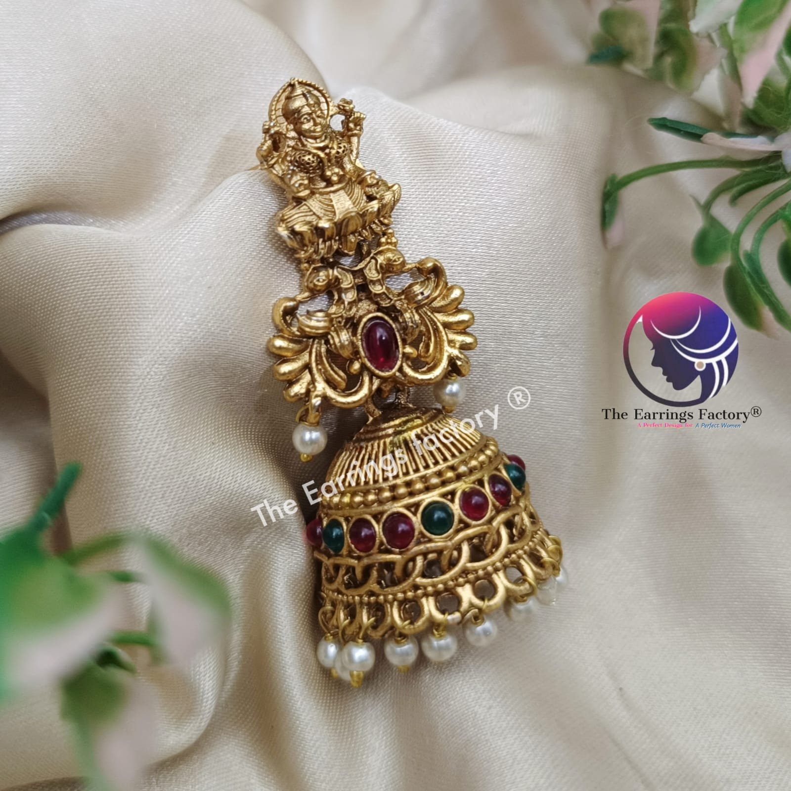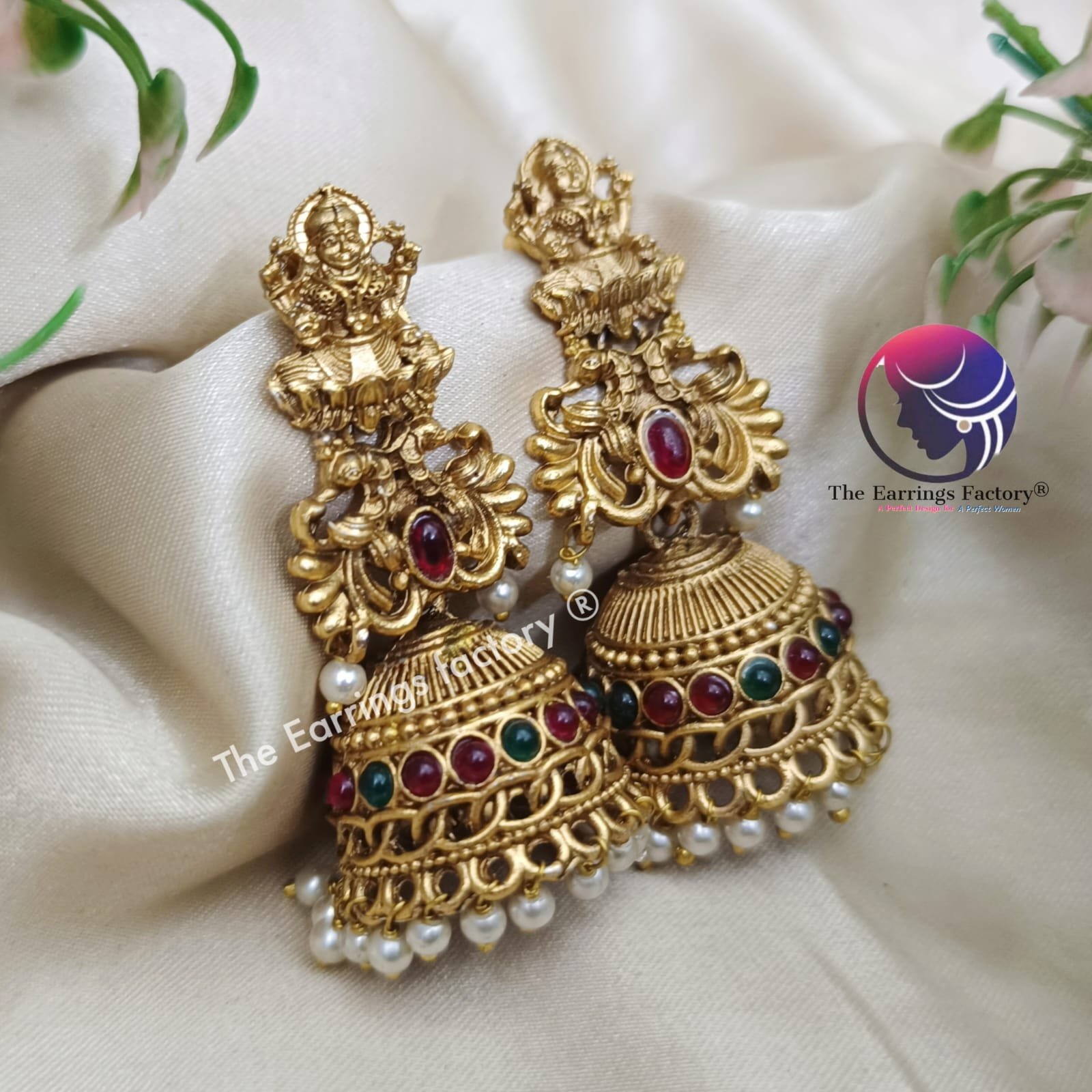 Traditional Antique Lakshmi Multi Stone Jhumka