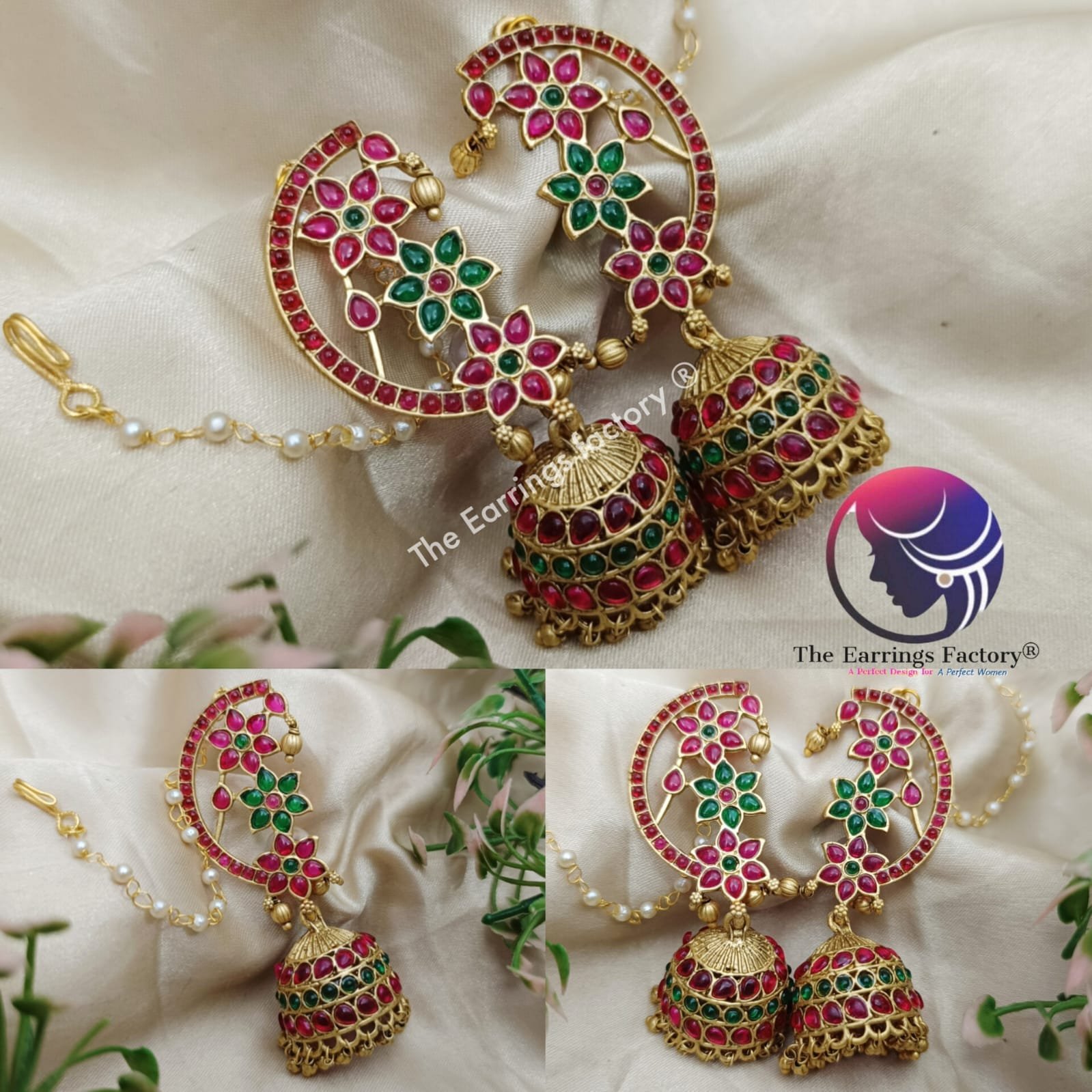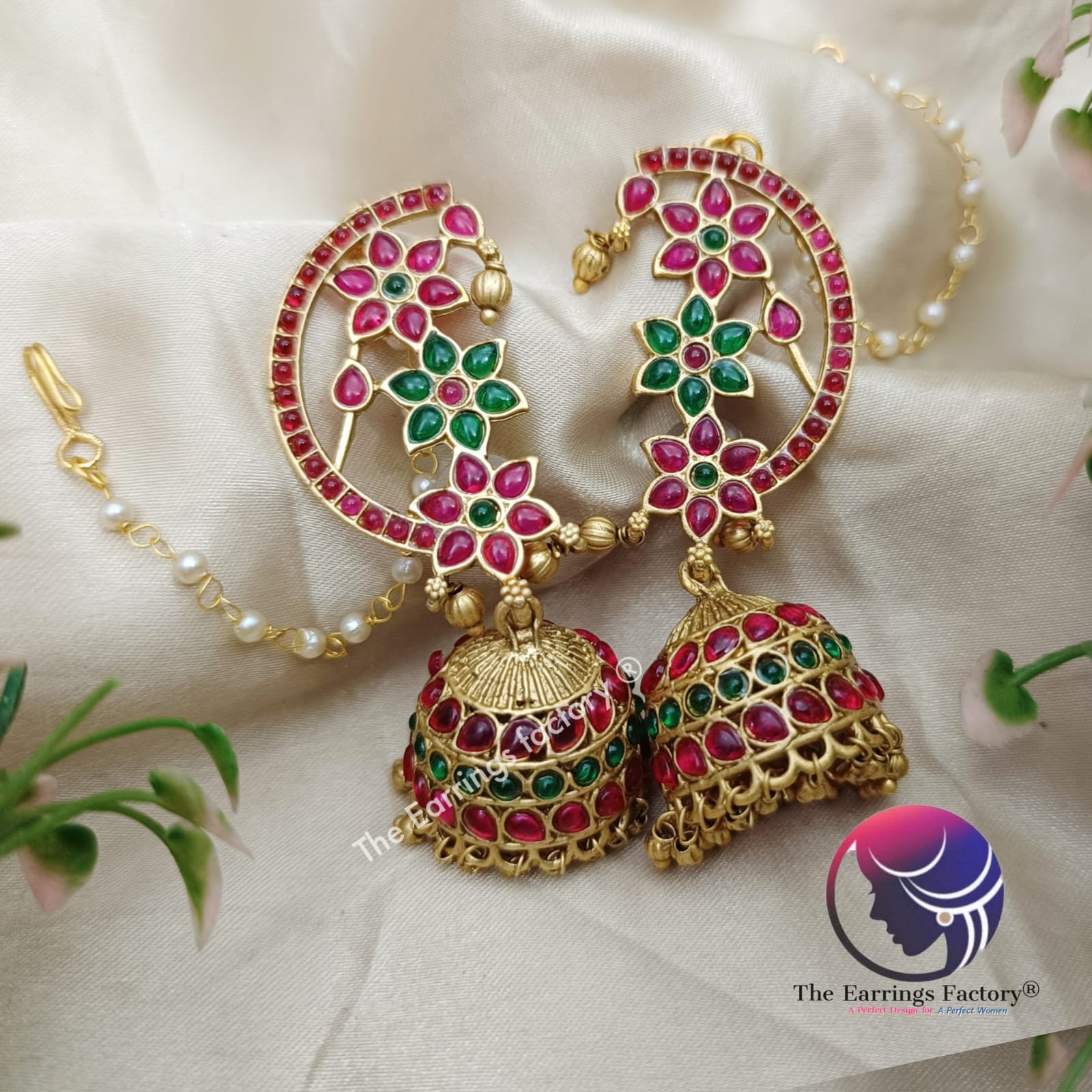 Traditional Antique Multi Stone Ear Cuff Jhumka With Ear Chain