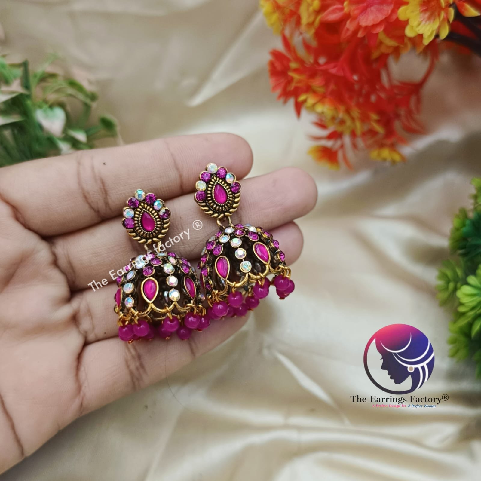 Traditional Golden Colourful beads | Blinking Stone Jhumka
