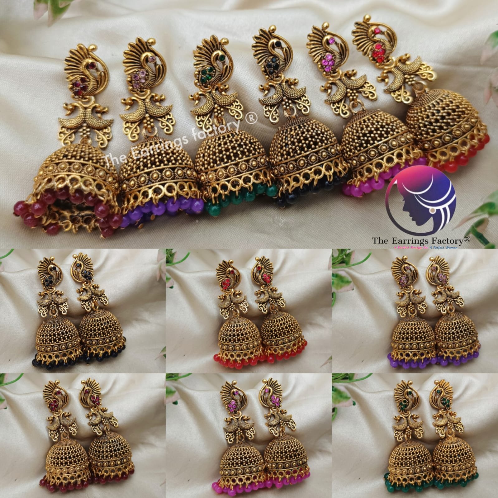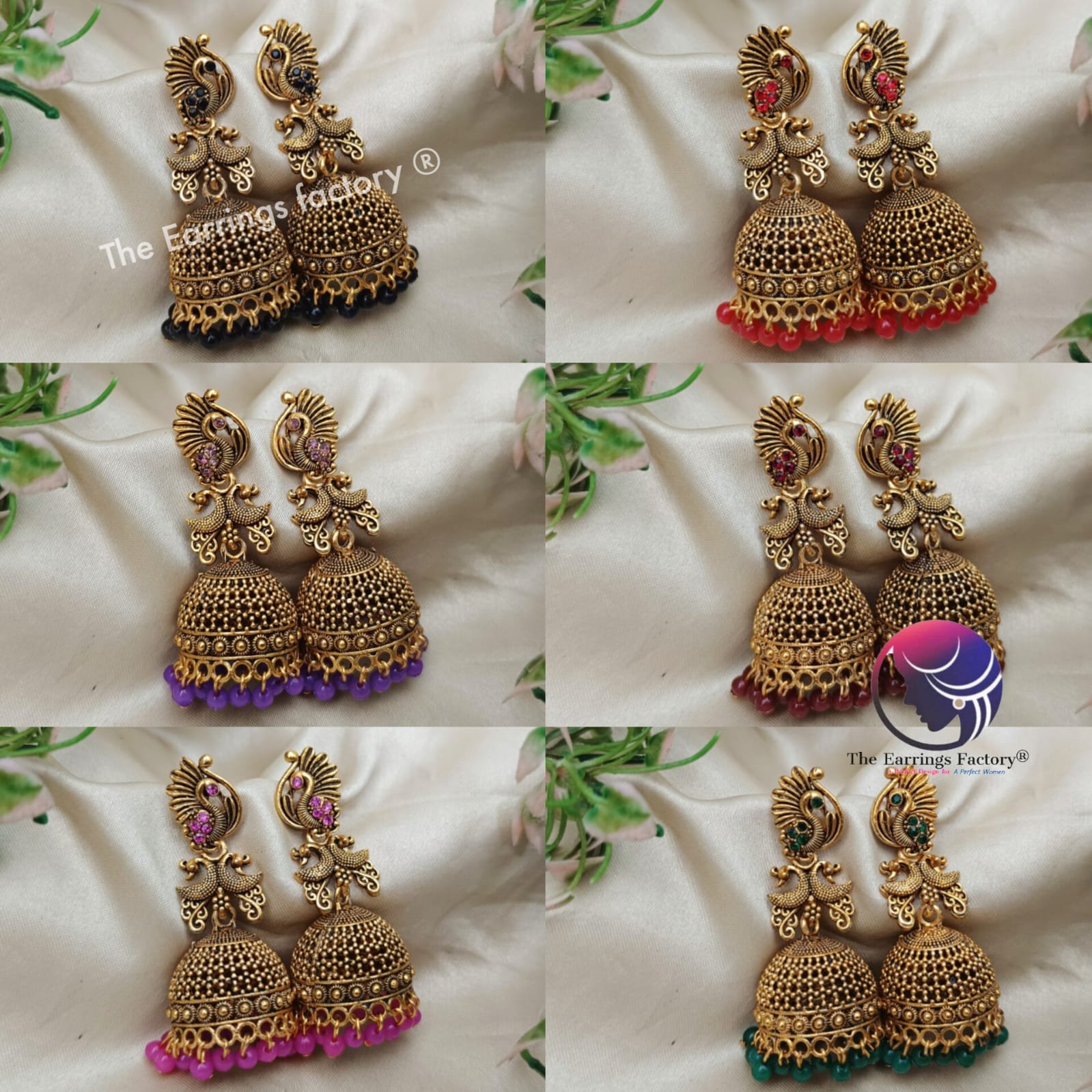 Traditional Golden Peacock Colourful Pearl Beads Stone Jhumka
