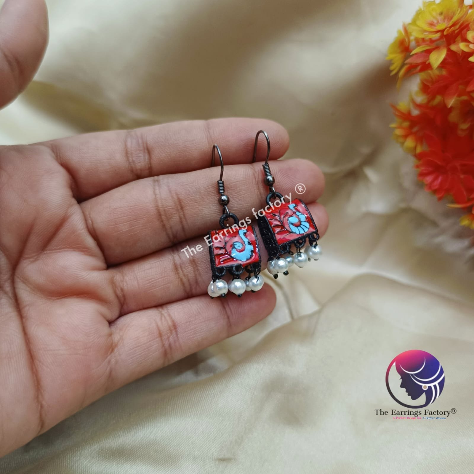 Trending Black Hand Painting Meenakari Hook Jhumka