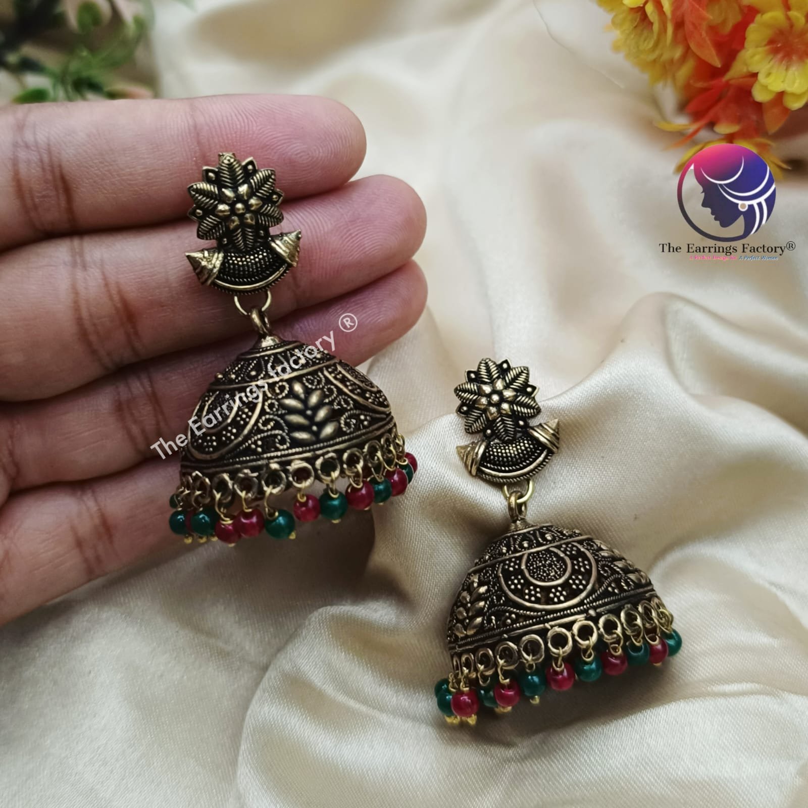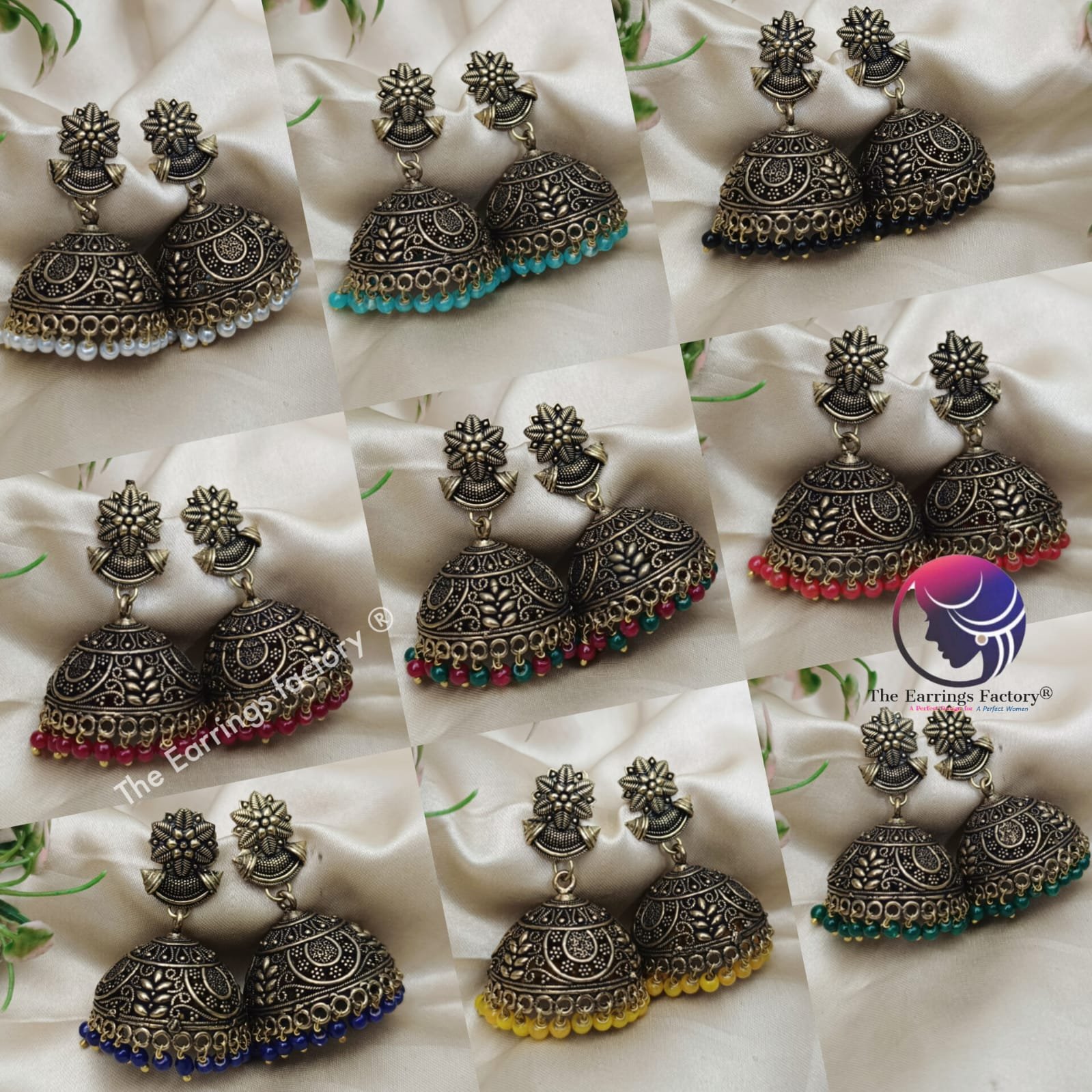 Trending Oxidised Mehandi Colour Beads Big Jhumka