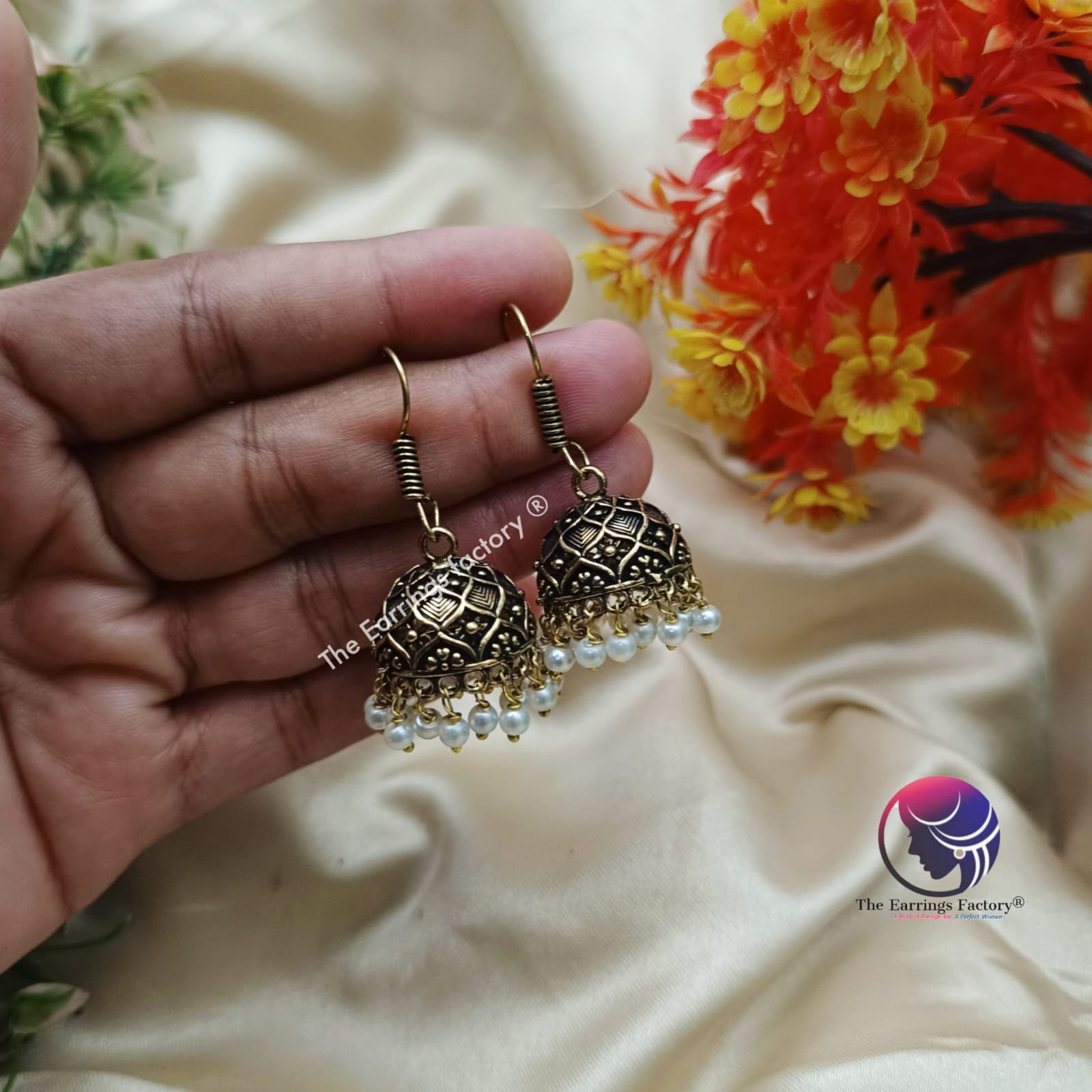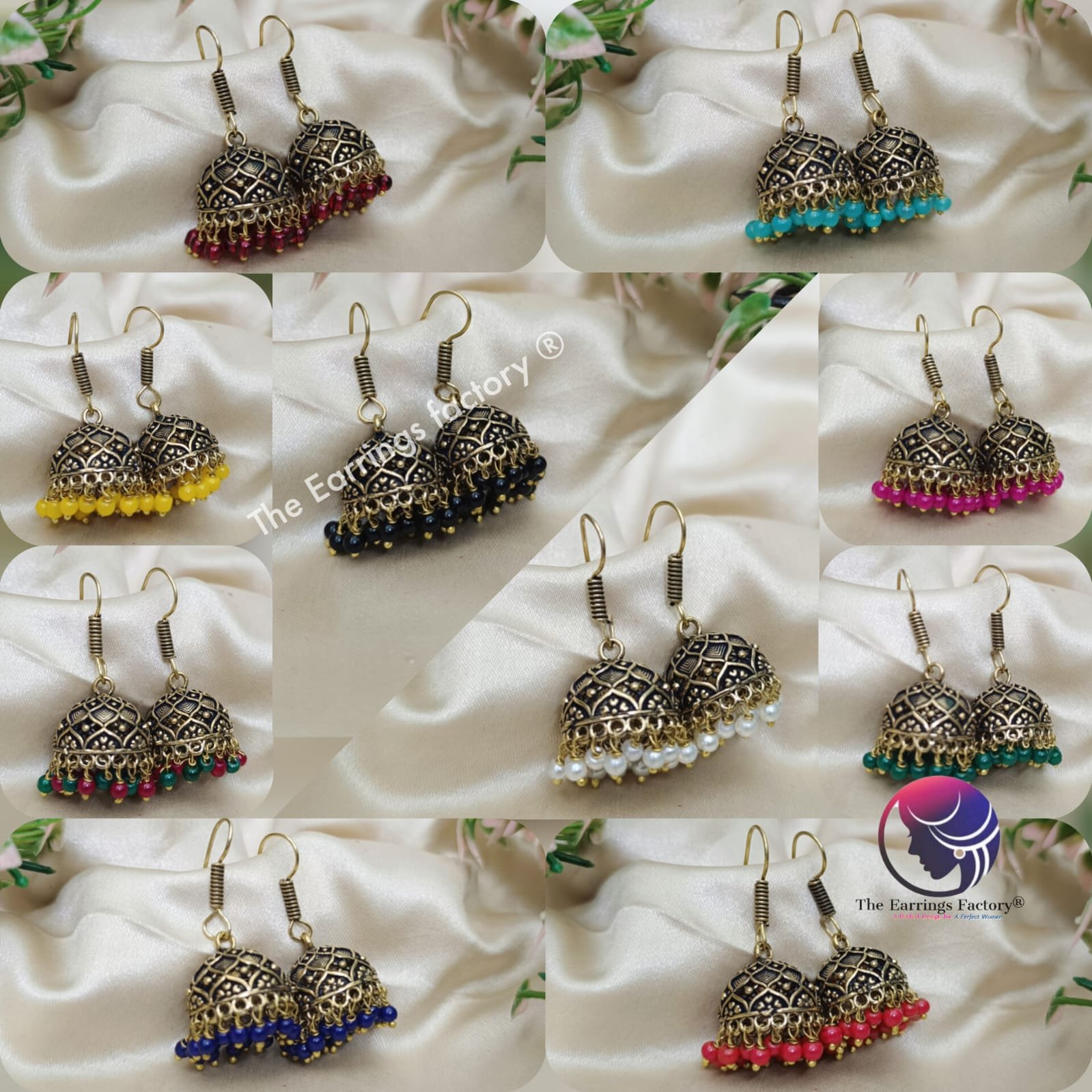 Trending Oxidised Mehandi Colour Beads Hook Jhumka