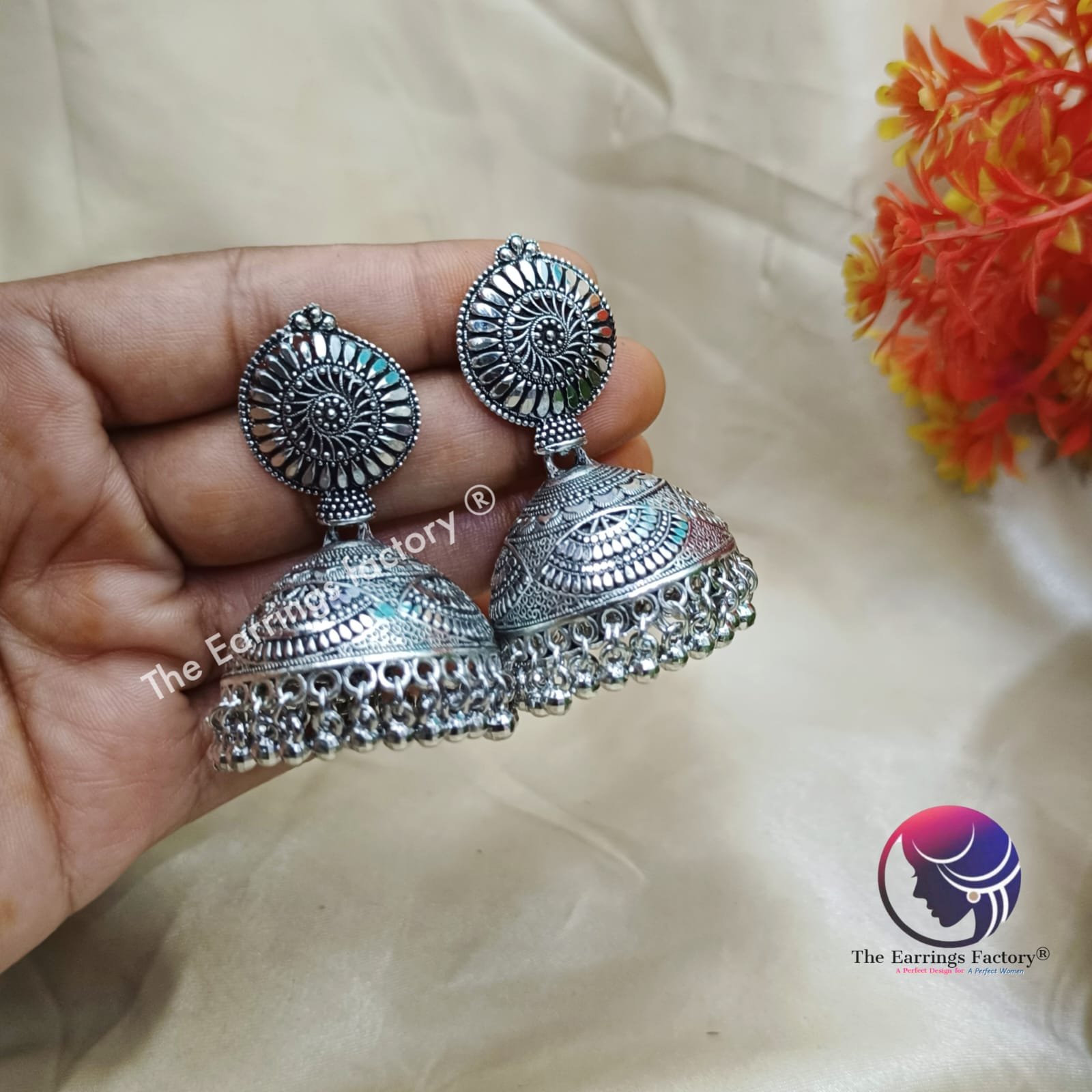 Trending Oxidised Metal beads Silver Jhumka