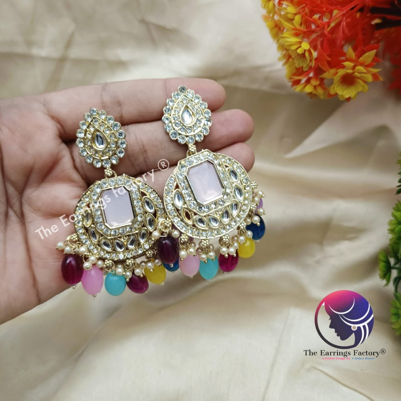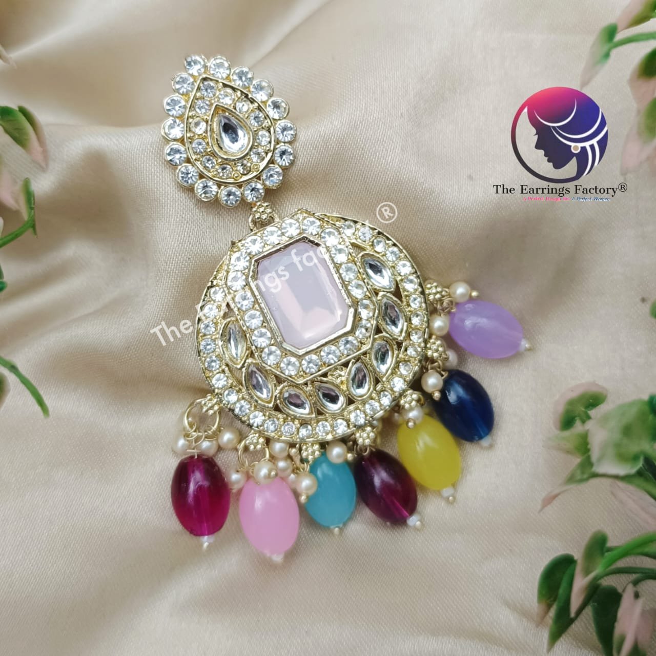 Weightless Kundan Stone Multi Colour Pearl Beads Party wear Earrings